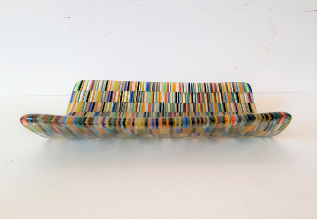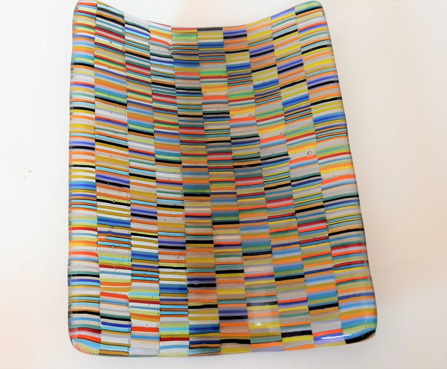 17cm x 12.5cm rectangular fused dish. Colour: multi